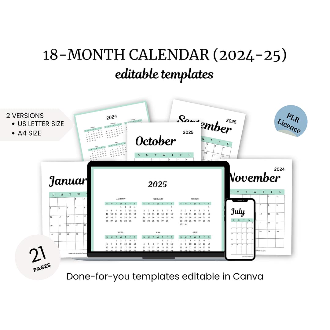 Free: 18-Month Calendar Templates (2024-2025) quantity