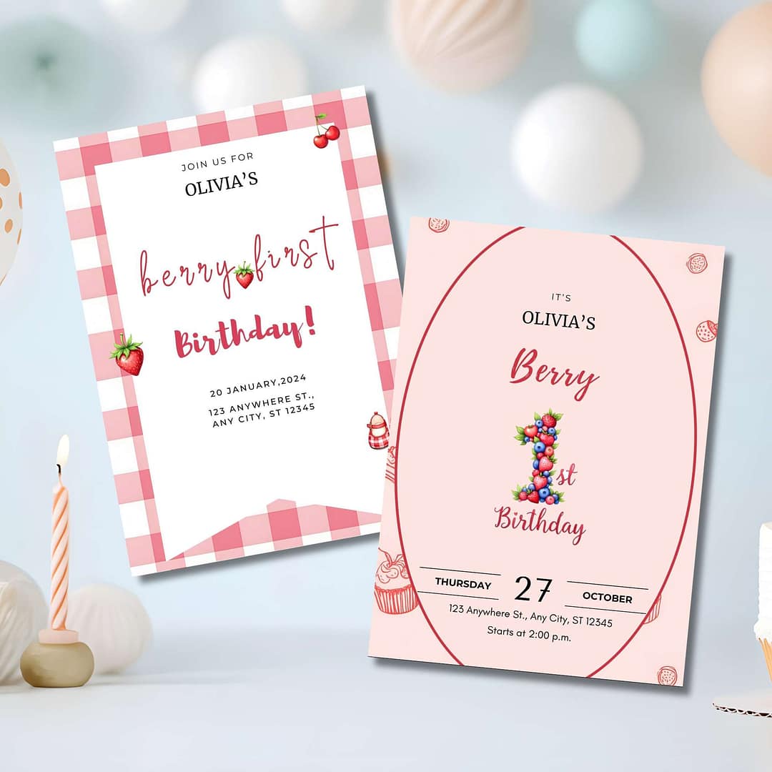 With a variety of styles and layouts, these invitations are not only visually appealing but also easy to customize, ensuring that every detail reflects the unique personality of the birthday child. Whether it’s a berry-themed party or simply a celebration of a year filled with love and laughter, these templates will help set the tone for a fun and festive gathering.