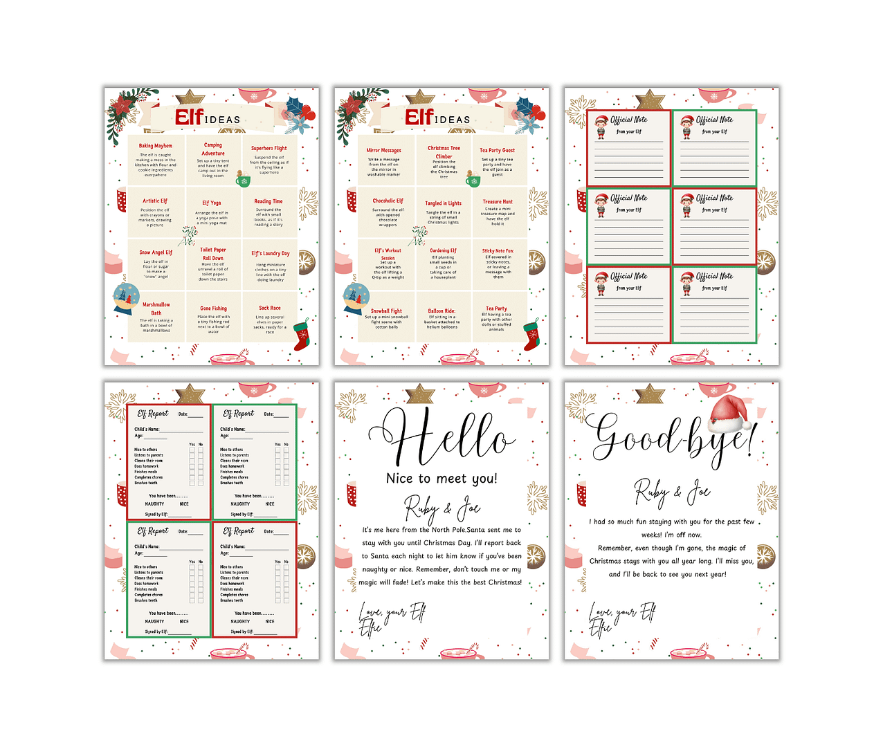 This bundle contains 6 pages of Naughty Elf printables to create a fun holiday season.