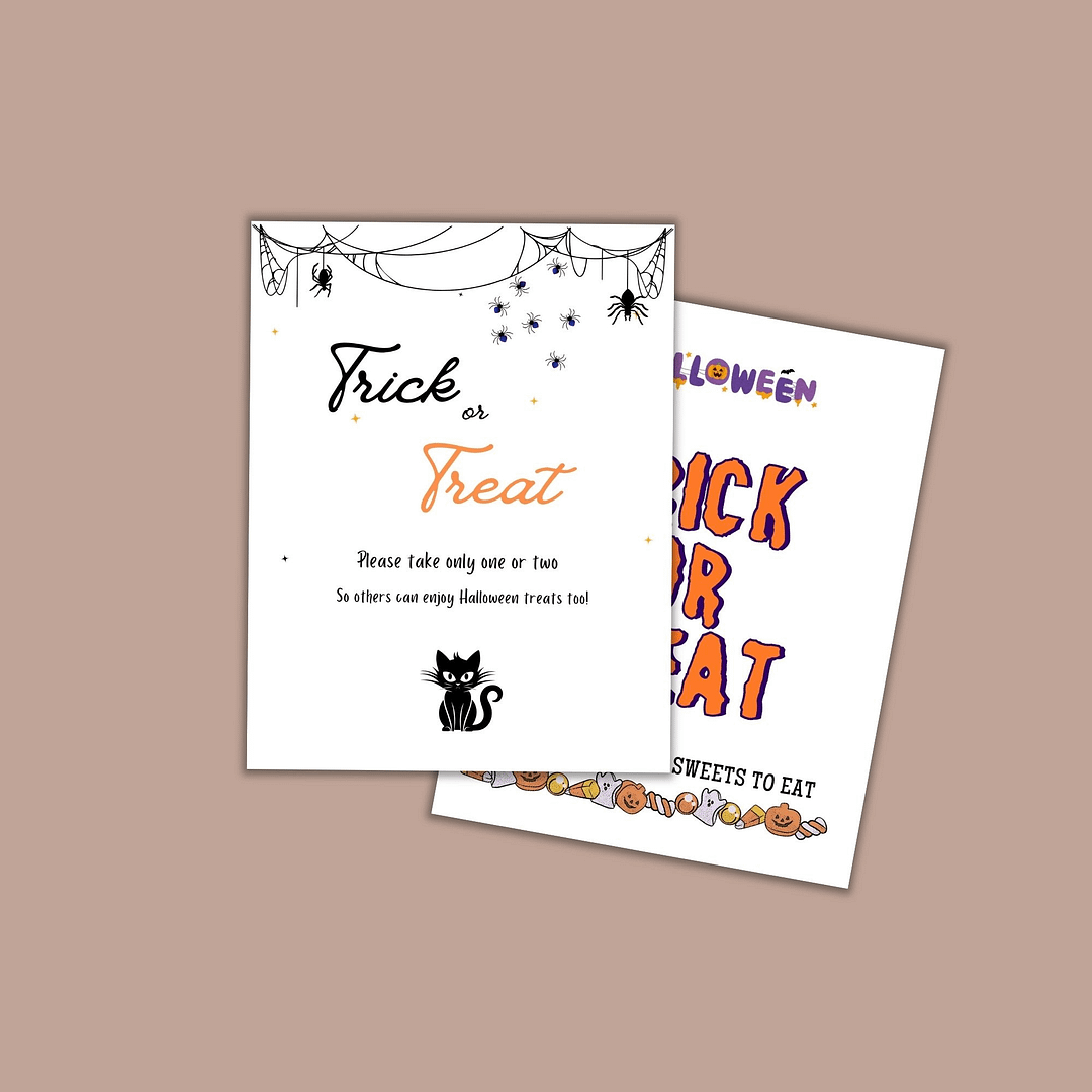 🍬 Offer your customers a delightful way to celebrate Halloween! Our printable Trick or Treat Signs set helps you provide festive decorations that create a welcoming atmosphere for trick-or-treaters.