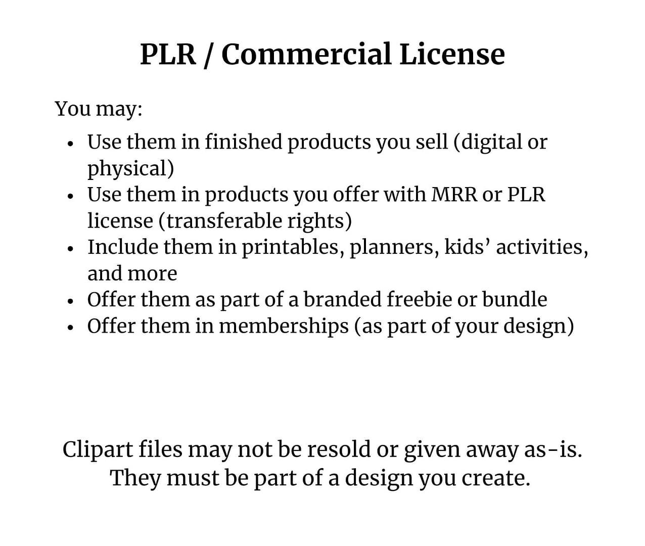 📜 This clipart set comes with Master Resell Rights (MRR), enabling you to integrate the graphics into your digital products for resale.