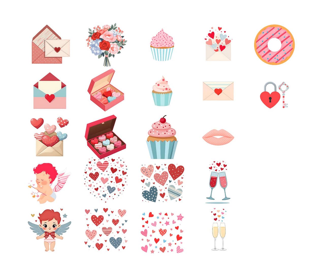 - Cute Valentine’s Elements: Perfect for any Valentine’s Day project, from cards to posters.