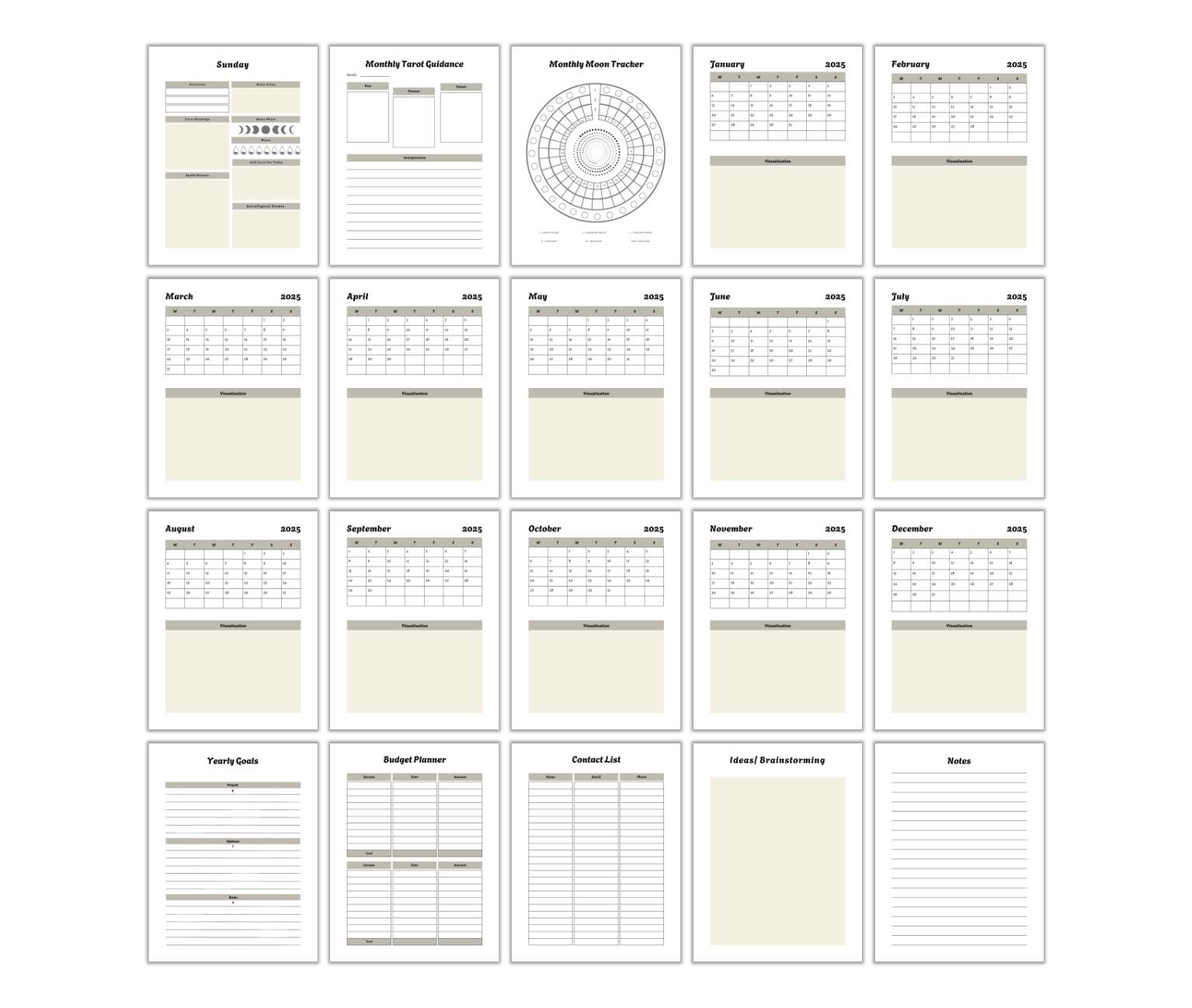 - Daily, Weekly, and Monthly Planners – Stay on top of everyday life while keeping your mystical flow.